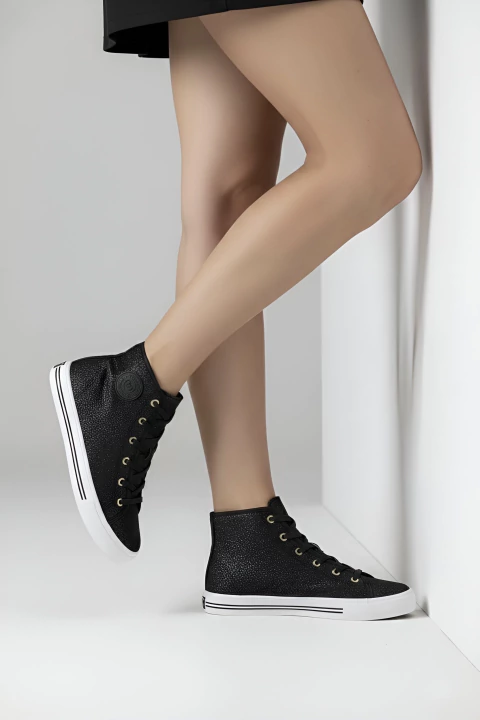 O Tênis Cano Alto Moleca é a escolha perfeita para quem busca um toque de brilho e estilo em seu visual. Confeccionado com material de lona de alta qualidade, ele traz um acabamento brilhante que adiciona sofisticação e modernidade ao modelo clássico de cano alto. Seu design confortável e casual é ideal para quem deseja um tênis versátil que combine com diversos looks, desde os mais descomplicados até os mais ousados. Perfeito para quem não abre mão de um visual cheio de personalidade e brilho!